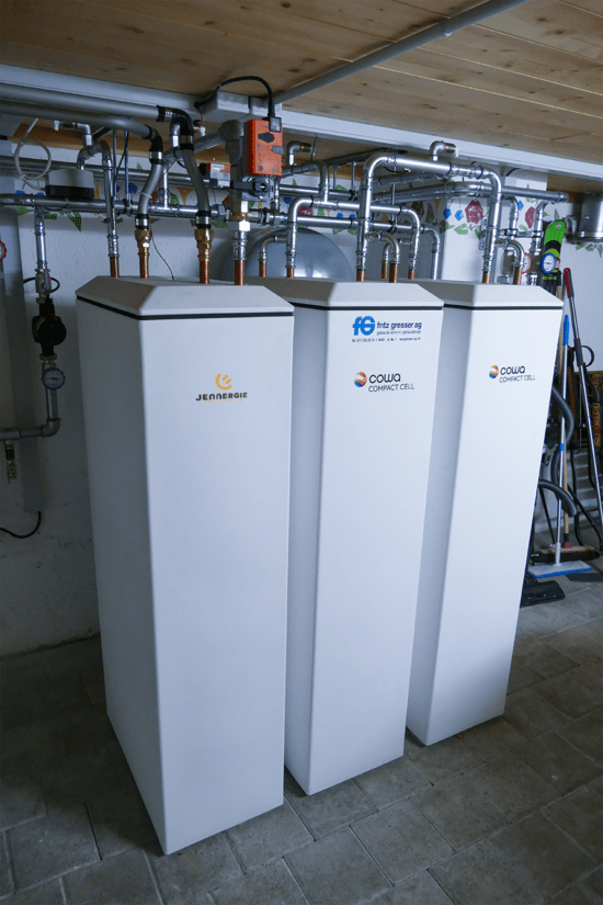 MFH Lithen SG Standort: Lithen (SG)Holzofenheizung 13kW2x Cowa COMPACT Cell SH 481x Cowa COMPACT Cell DHW 58 EFH Riehen Standort: Riehen (BS)Luft-Wasser-Wärmepumpe Lambda EU13L Cowa COMPACT Cell SH 48Cowa COMPACT Cell DHW 58 EFH Küssnacht a.R. Standort: Küssnacht am Rigi (SZ)Wärmepumpe: CTA OH I 9ec - Erdsonde2x Cowa COMPACT Cell 48 - PufferspeicherSpeicherkapazität: 20 kWh EFH Vordemwald Standort: Vordemwald (AG)Wärmepumpe: alpha innotec NP-AW 20-16 – Luft/Wasser-Inverter-Wärmepumpen1x Cowa COMPACT Cell 45 - Pufferspeicher1x Cowa COMPACT Cell 58 - Brauchwarmwasserspeicher EWL See-Energie-Netz Horw Kriens Standort: Horw (LU)See-Energie-Netz Horw Kriens6x Cowa COMPACT Cell 58 - PufferspeicherSpeicherkapazität: 78 kWh MFH Rothenburg Standort: Rothenburg (LU)Wärmepumpe: CTA Optiheat Inverta OH I 4esr TWWSpeichergrösse: 1100l3x Cowa COMPACT Cell 45 - Pufferspeicher EFH Steffisburg Standort: Steffisburg (BE)Wärmepumpe: Elco S12.2Speichergrösse: 400lCowa COMPACT Cell 58 - Brauchwarmwasserspeicher EFH Pany Standort: Pany (GR)Wärmepumpe: Oertli LSI 140 SHW-SGPhotovoltaik: 17 kWpSpeichergrösse: 800lcowa BOOSTER Capsules 45