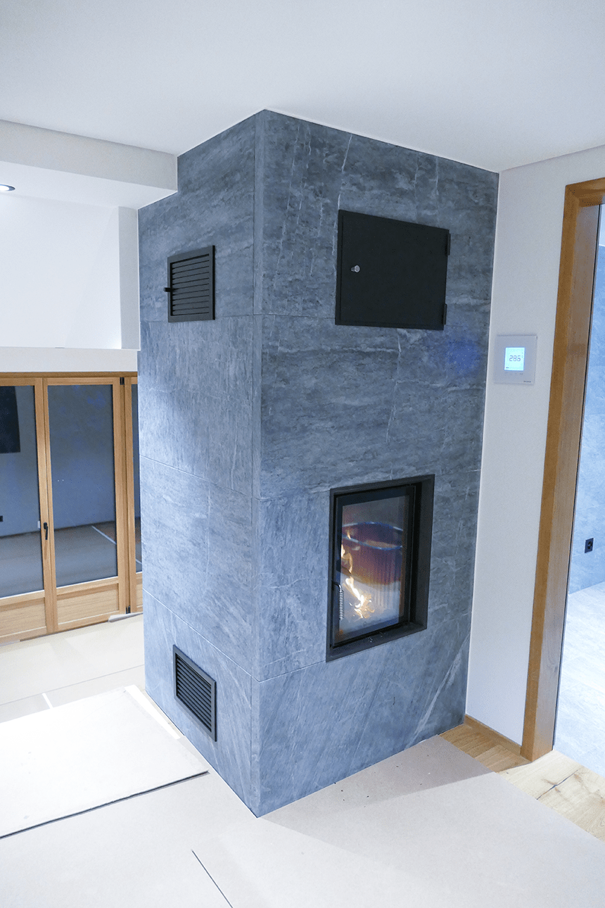 - Energiequelle: Holzofen mit einer Leistung von 13 kW